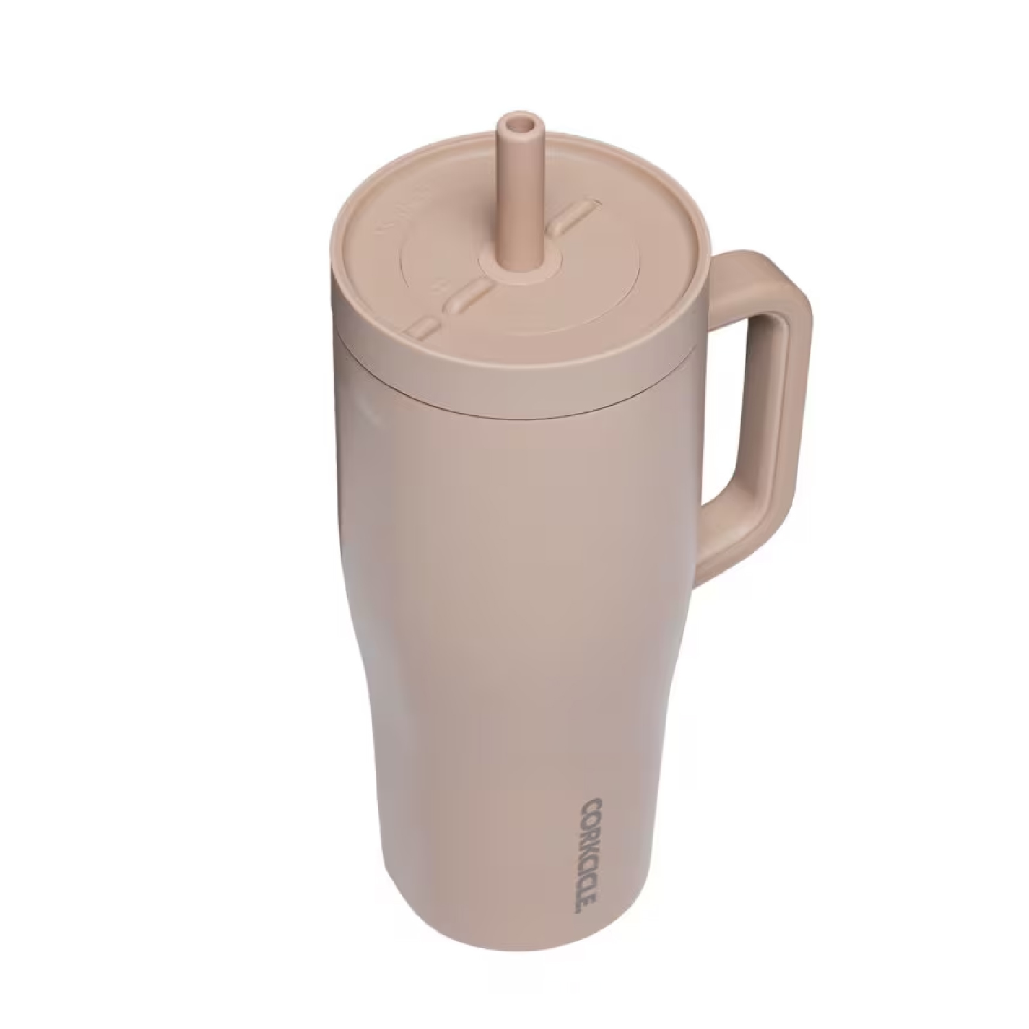 A triple-insulated stainless steel cup with a wide mouth for ice, leakproof locking lid, and two-piece straw system. Designed with easy-grip sides, a non-slip bottom, and a comfy carry handle-plus, every purchase supports clean water through CORKCICLE's charity partnership. Item Color: Desert