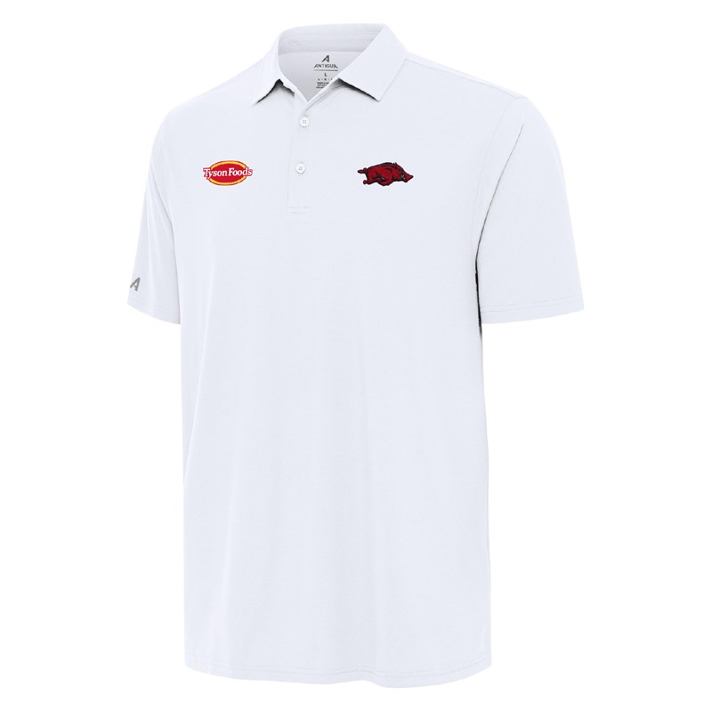 Cheer on the Hogs in style with this game-day ready polo! Designed with Razorback football fans in mind, this sleek polo combines team pride with all-day comfort. Made from a soft and stretchy 88% polyester/12% spandex brushed jersey, it's lightweight (6.5oz) but durable enough to keep up with every touchdown celebration. The self-collar band and side vents keep your look sharp and breathable, whether you're tailgating or cheering in the stands. Finished with the Tyson Foods logo, it's the perfect blend of team spirit and hometown pride.