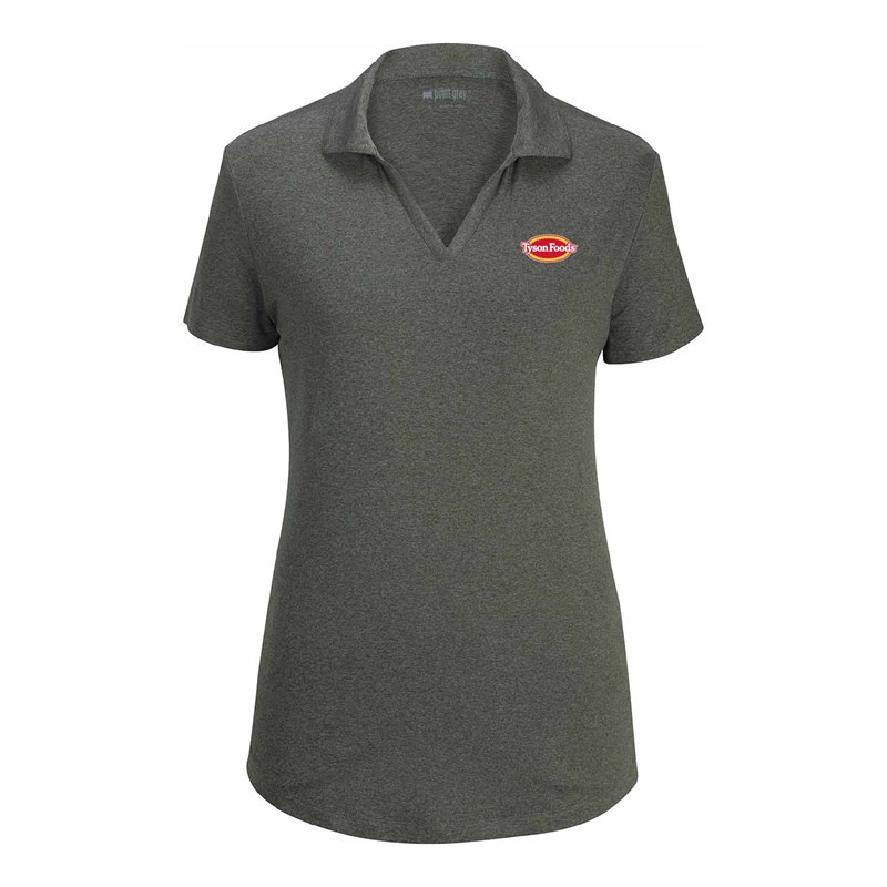 This 5 oz. jersey knit combines 45% recycled polyester, 45% polyester, and 10% spandex for a comfortable, eco-friendly fit. Featuring moisture-wicking and snag-resistant fabric, a self-fabric collar with stand, and a flattering V-neck. Finished with hemmed sleeves and a side-vented bottom for easy movement and style.