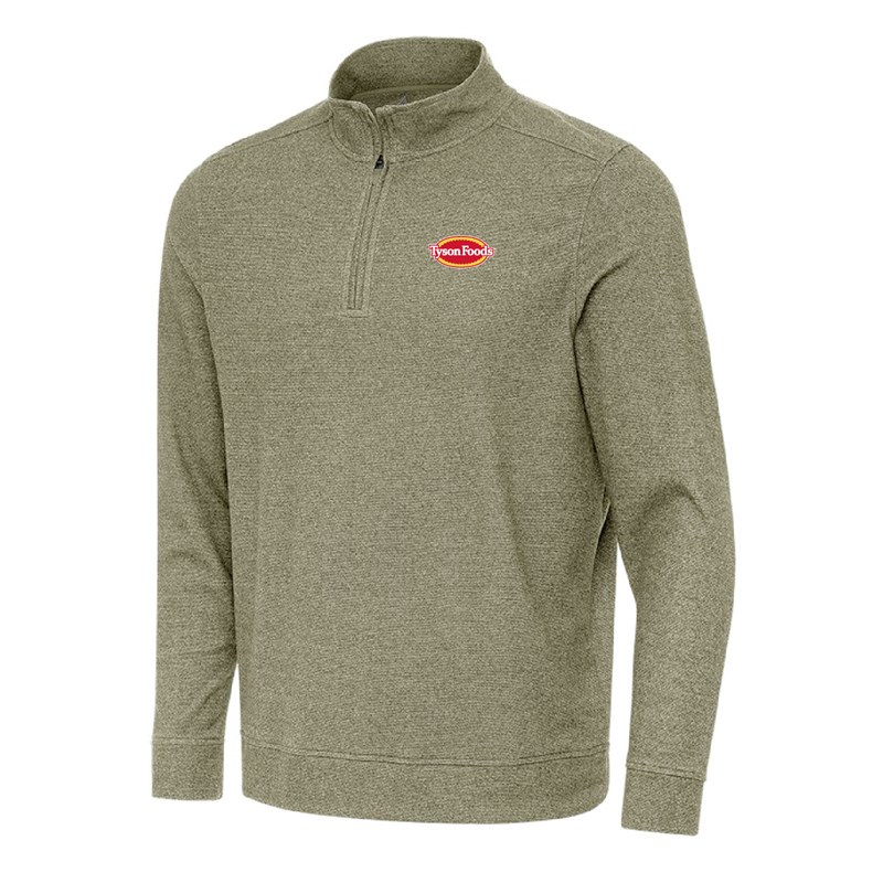 Add a layer of warmth and style with this pullover crafted from our ridiculously soft brushed heather fabric. Perfect on or off the course, it features 91% polyester / 9% spandex signature buffed fleece for comfort and flexibility. The design includes an 8-inch zipper with a covered placket and dyed-to-match tipped plastic pull, plus self-fabric cuffs and hem for a clean finish. Accented with the Antigua ‘A’ on the right cuff, and the Tyson logo on the left chest, this piece blends performance with understated sophistication.