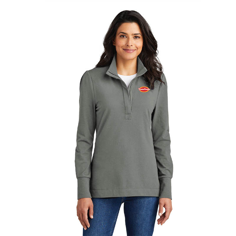 Elevate your wardrobe with our Ladies Stretch Pullover in Shadow Grey, a versatile and stylish choice that effortlessly blends comfort, stretch, and sophistication. Whether you're hitting the fairway or navigating the corporate hallway, this 1/4-zip pullover is designed to meet your style and performance needs.