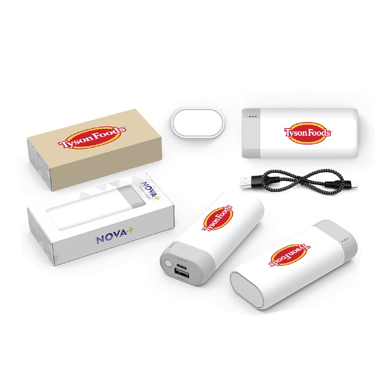 Stay powered up on the go with the Nova Plus Charger—a portable backup charger designed to keep your phone and other USB-powered devices fully charged. Compact yet powerful, this North American-made charger features dual charging ports, LED battery status lights, and ample branding space. Never run out of battery when you need it most!